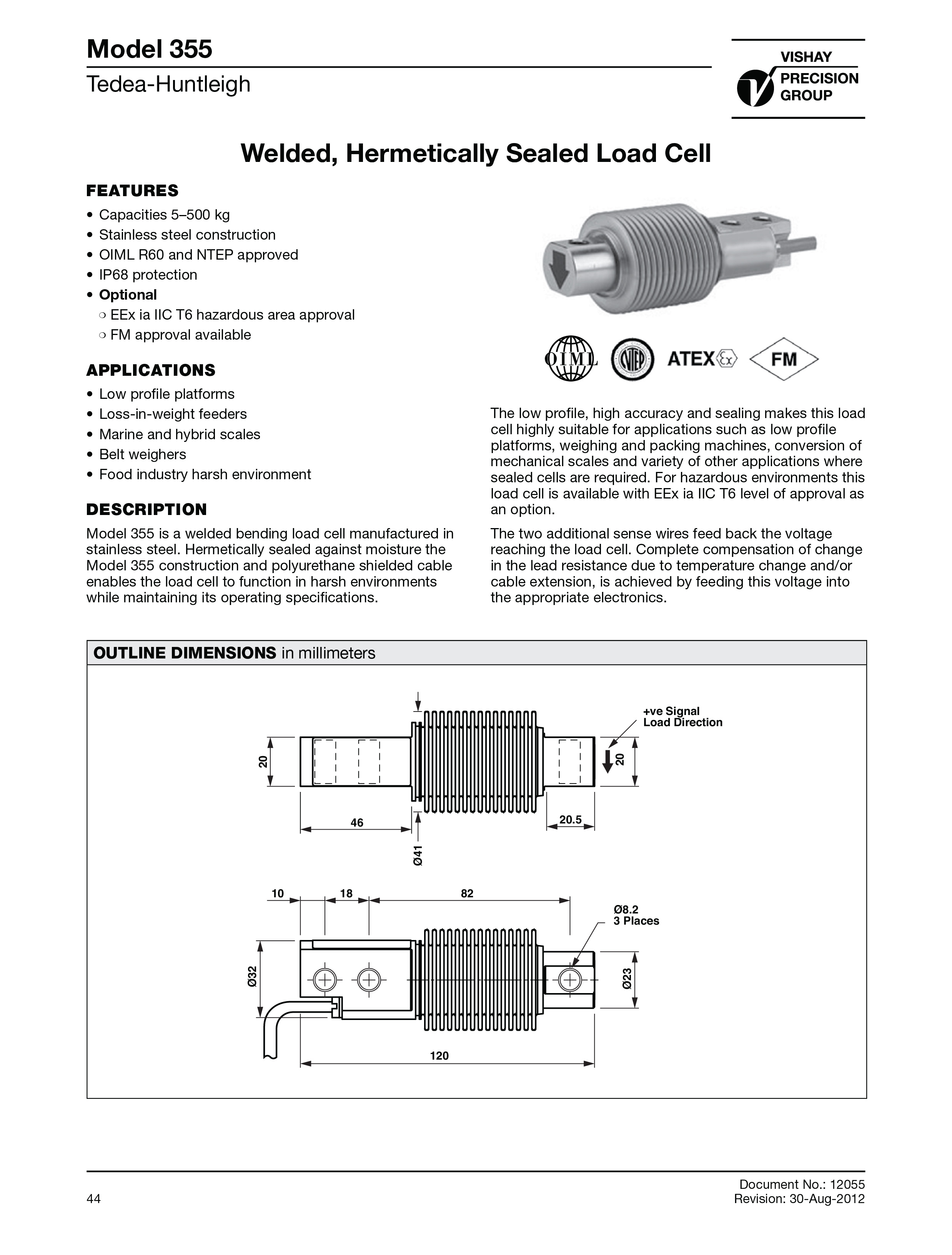 0355-0100-G000 : โหลดเซลล์ Capacities 100 kg IP68 Single Ended Shear Beam - Vishay Loadcell by pik2pak.com